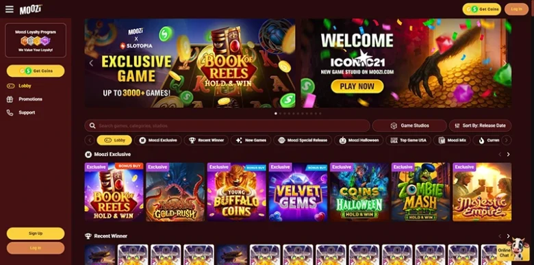 Moozi Casino is a social sweepstakes-based gaming platform that combines engaging gameplay with the chance to redeem real prizes. Available to players in most U.S. states, Moozi Casino offers a wide range of entertainment, including slots, table games, live dealer options, and more from top-rated software providers.