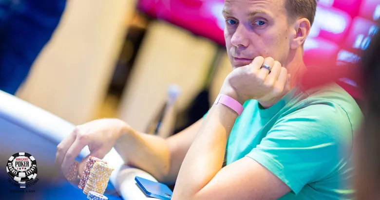 Aleksei Smirnov puts Santtu Leinonen All In with K 9 . Santtu calls with A 10 .