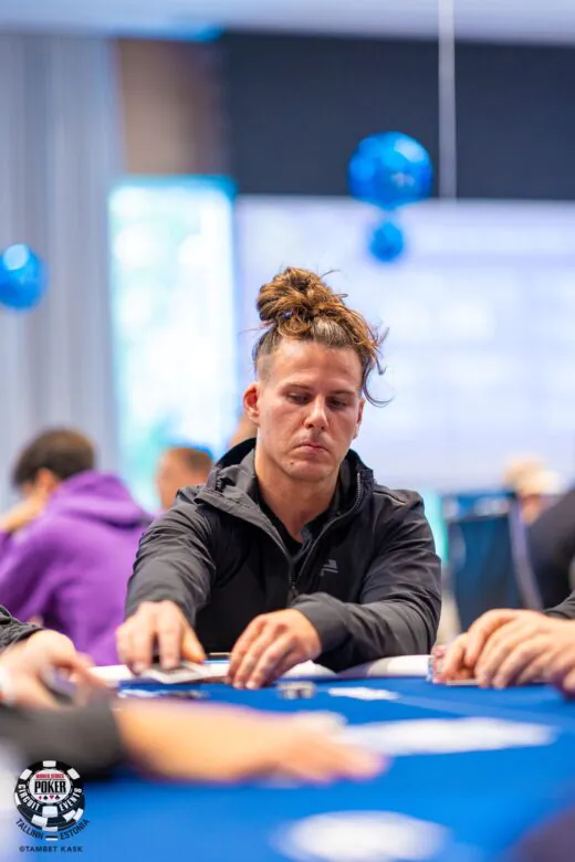 On table 12, Astur Külanurk raises to 25k (blinds 6k/12k). Samuli Koponen shoves 146k from the button. Astur is thinking but can’t decide wether to call or fold. Eventually he asks Samuli “you are from…?”. Samuli replies “Finland” and Astur quickly folds.