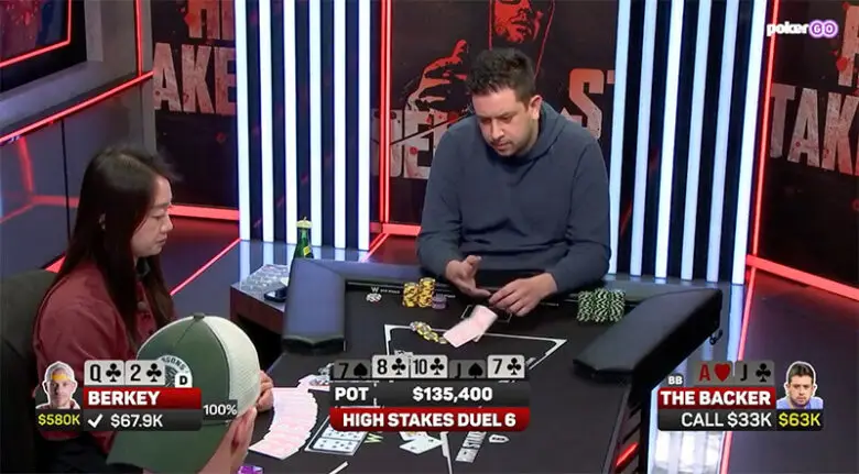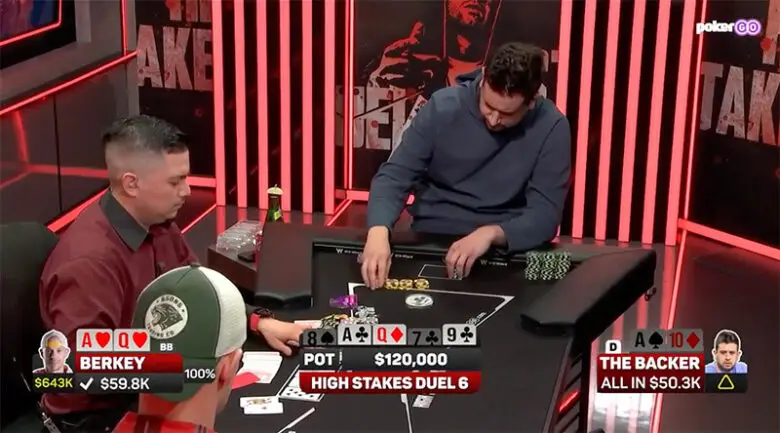 After this hand, Berkey took the lead for the first time: +$28.7K.