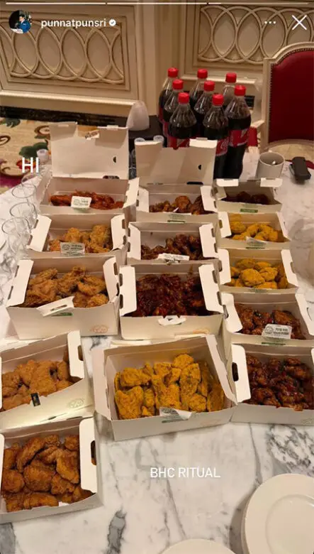 Punsri shared his ritual in Instagram Stories a couple of days ago. Together with friends, he orders several boxes of wings, chicken strips, and Coke.