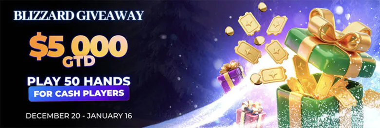 Play real money cash games at any limits. For every 50 raked hands, you receive 1 ticket to a tournament. The final tournament with a $1,000 prize pool starts on January 16 at 13:30 UTC. You don’t need to play it — all players go all-in from the first hand.