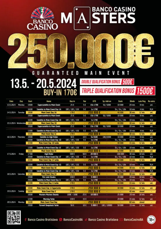 Around since 2016, the Banco Masters is currently the longest ongoing live poker series in Slovakia. In this edition, the entrance fee has been set to just 170€, meaning the future Banco poker champion could turn their pocket money into tens of thousands of Euros.